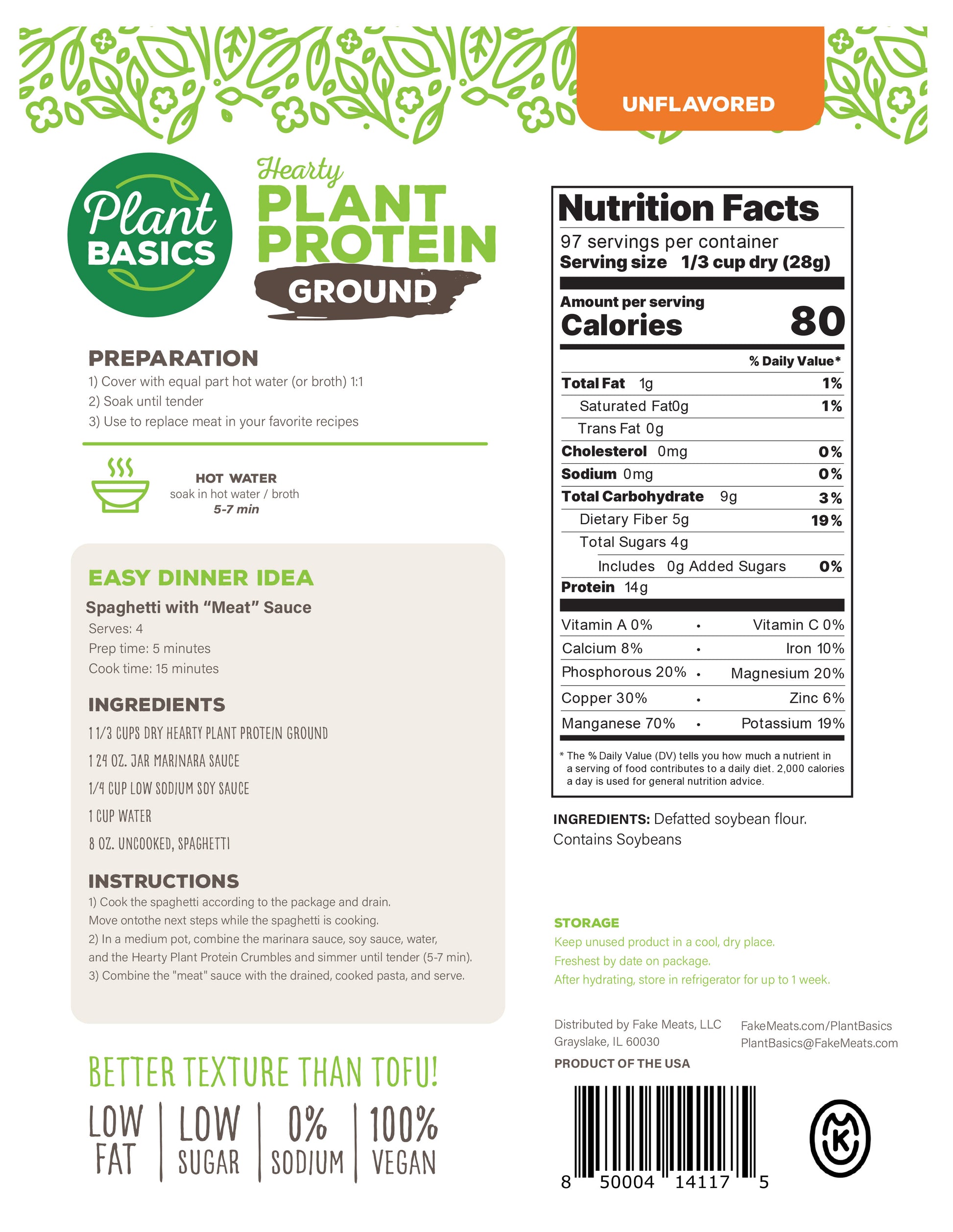This Hearty Plant Protein comes unflavored so you can season or marinate them to perfection. Simply boil your succulent hearty plant protein crumbles in broth or water then infuse them with your favorite herbs, spices and sauces. The result? A quick and easy meat substitute you just won’t be able to resist!