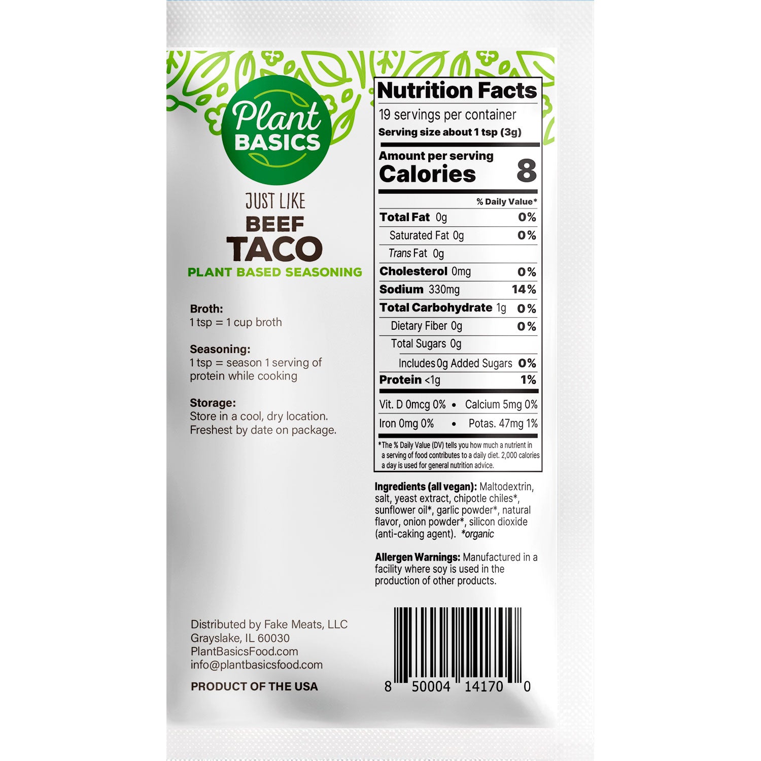 BRING VEGAN RECIPES TO LIFE - This all-natural, powdered seasoning tastes just like beef taco but contains no animal ingredients. For a rich and full-flavored broth, add one teaspoon of this vegan seasoning to one cup of water. Or, to season your tofu or plant proteins, sprinkle one teaspoon on 1 serving of protein while cooking. Each 2 oz. package contains 19 servings of plant-based powdered seasoning.
